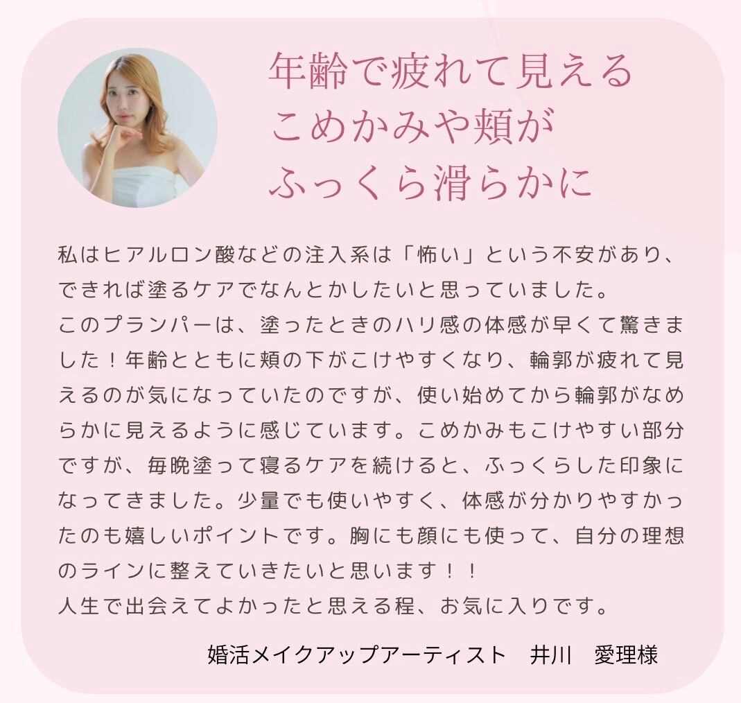 プロ向け製品で8年間支持されてきた設計思想はそのままに。ボリュームが欲しいデコルテやバストエリアへ、確かな実績に基づくアプローチを継承。新たに厳選した自然由来成分を掛け合わせることで、女性らしいふっくらとした質感と、吸いつくようななめらかさを同時に叶えます。